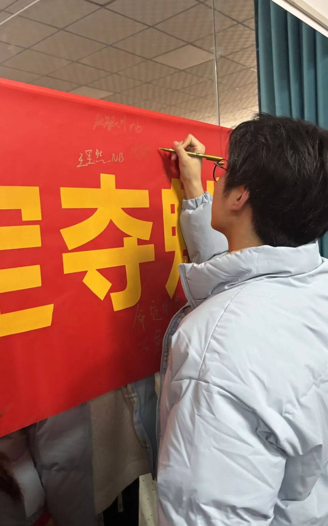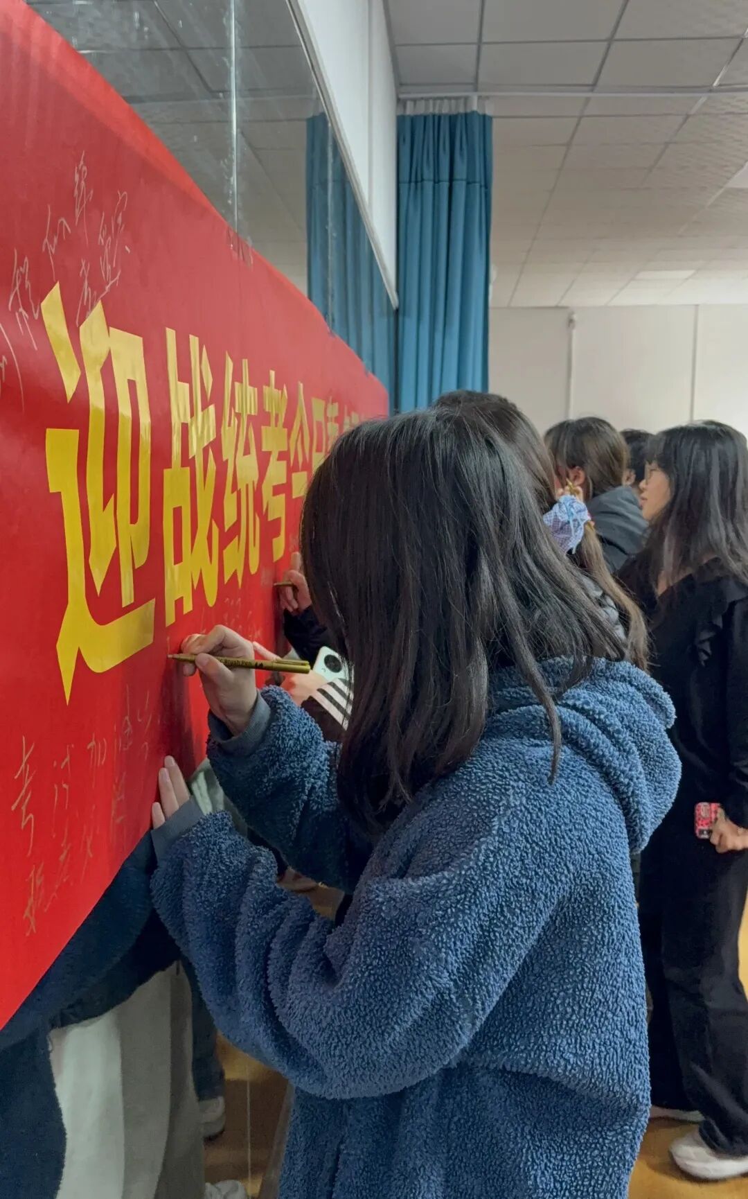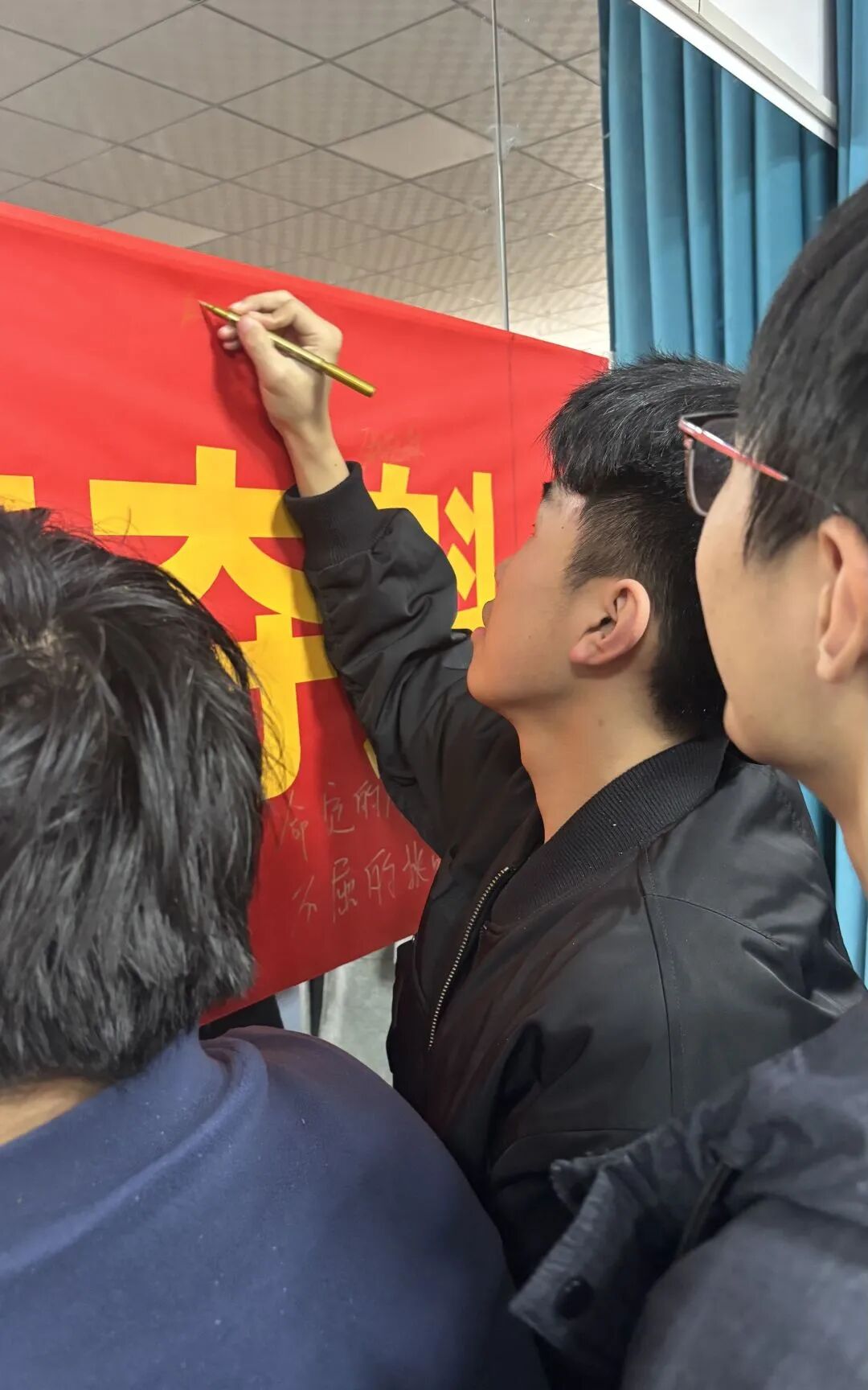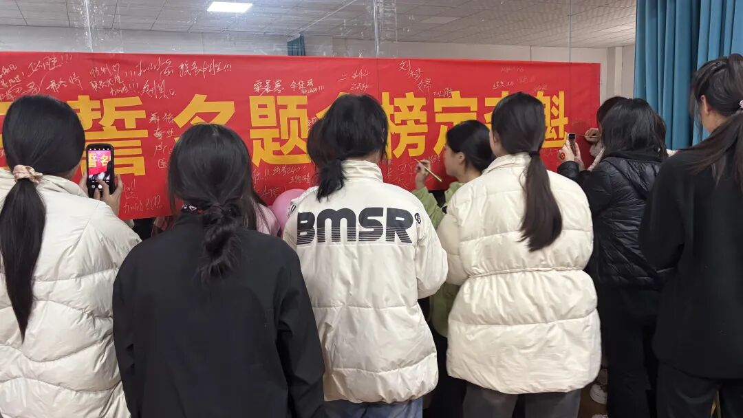 誓言之后,是行动的见证。师生依次在励志横幅上认真签下姓名与对未来的无限憧憬,每一笔都是承诺,每一个名字都是决心。