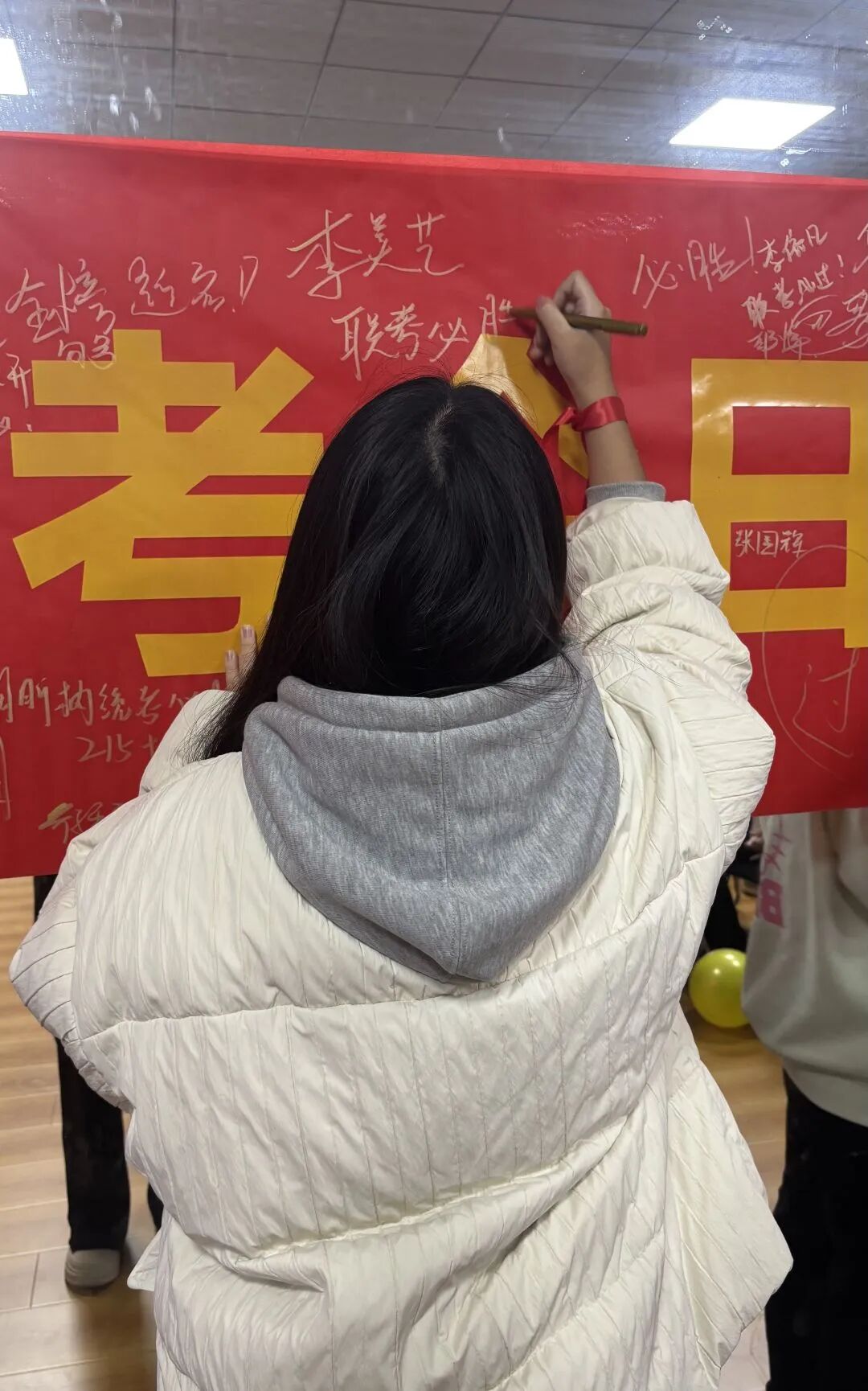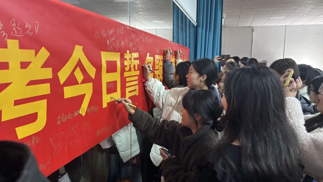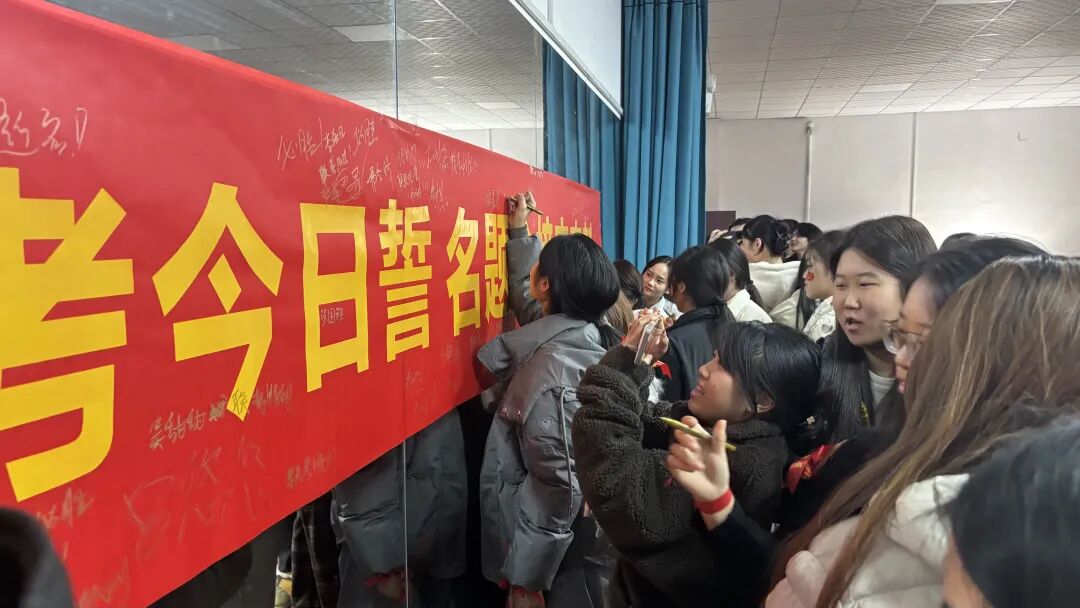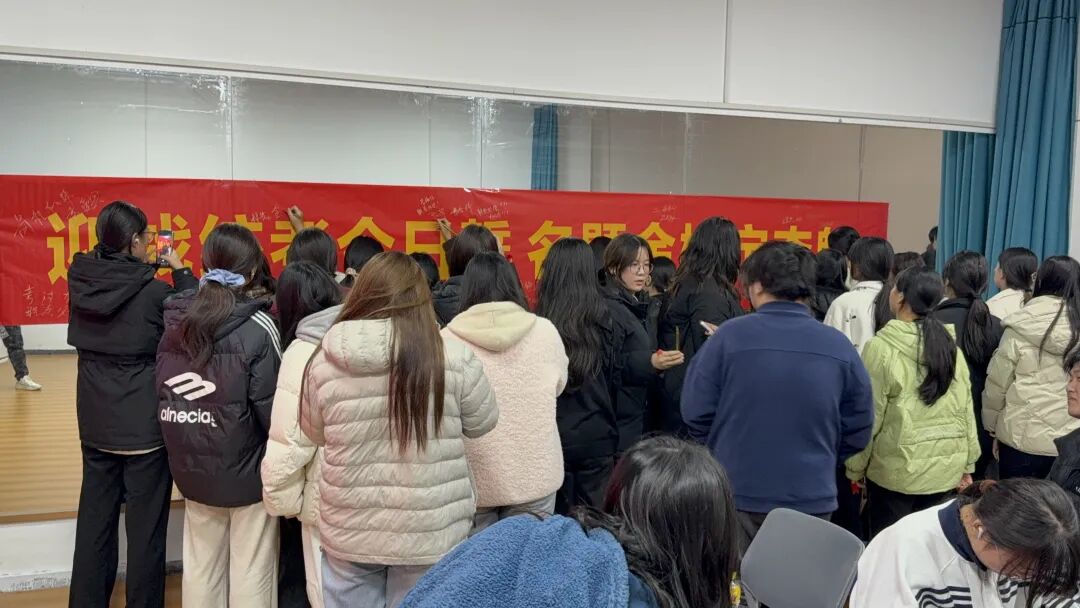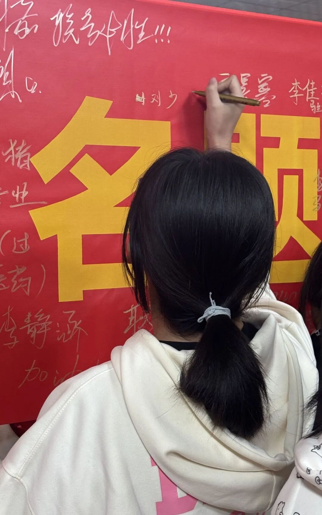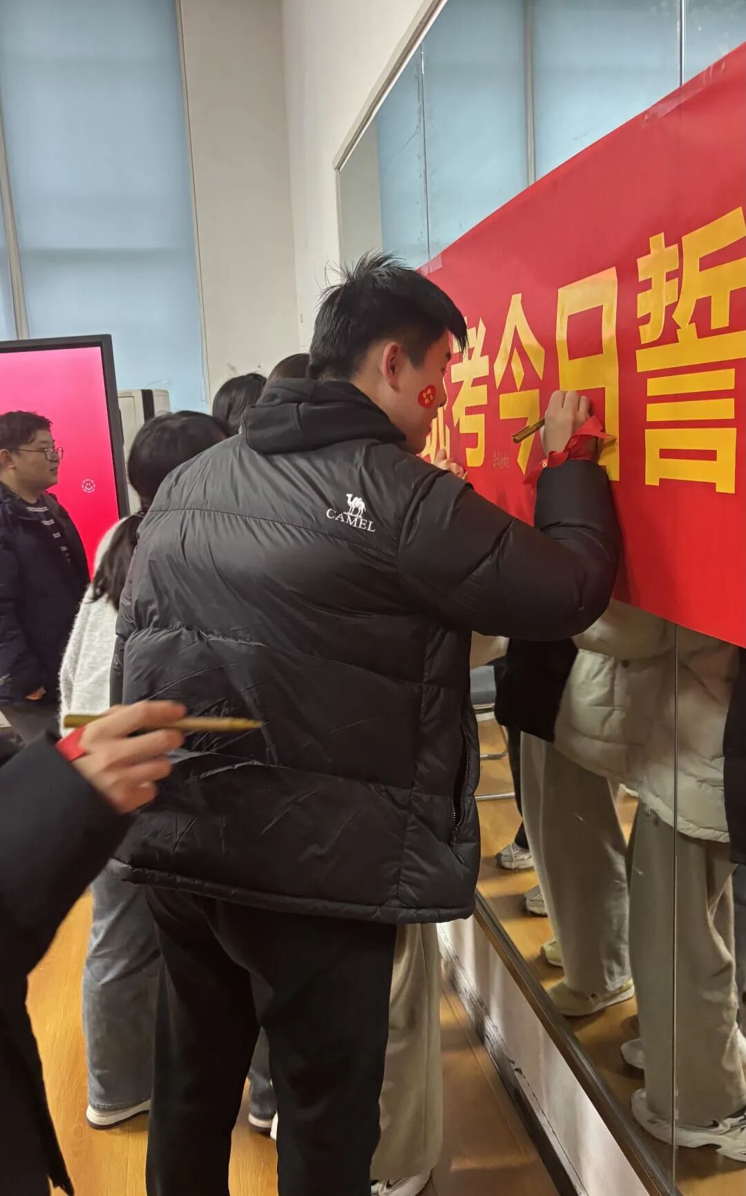 誓言之后,是行动的见证。师生依次在励志横幅上认真签下姓名与对未来的无限憧憬,每一笔都是承诺,每一个名字都是决心。