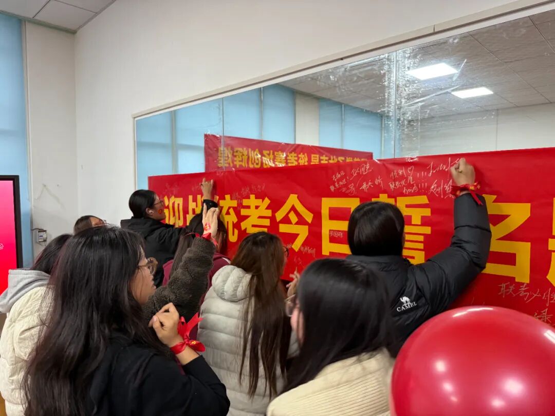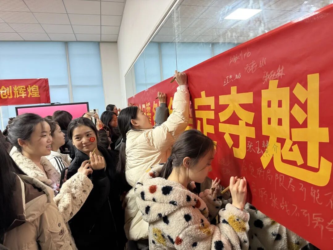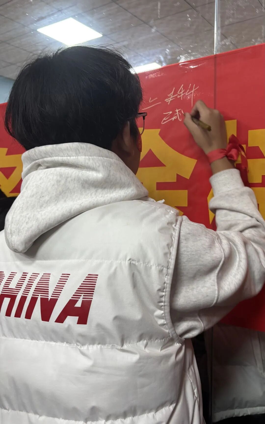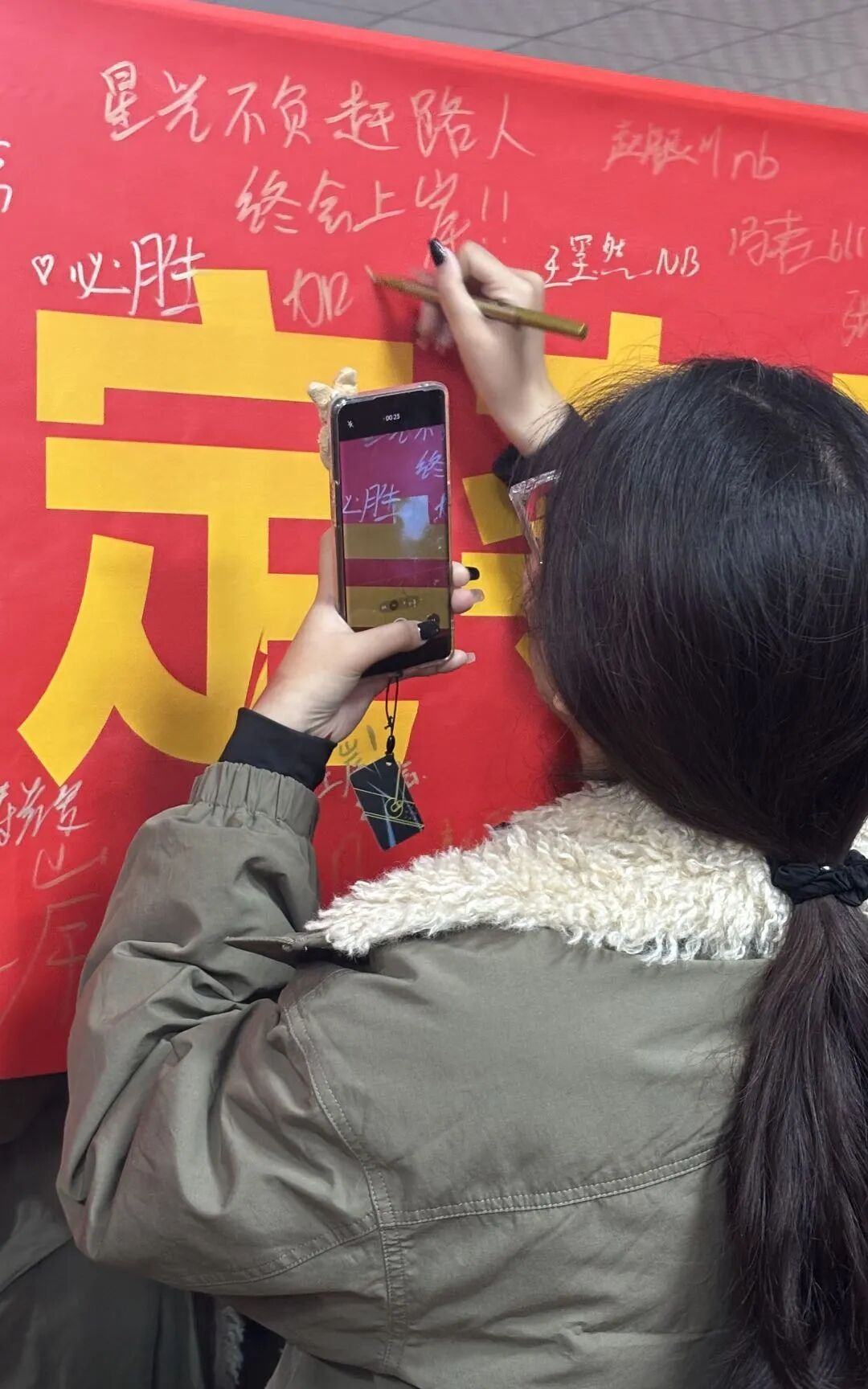 誓言之后,是行动的见证。师生依次在励志横幅上认真签下姓名与对未来的无限憧憬,每一笔都是承诺,每一个名字都是决心。